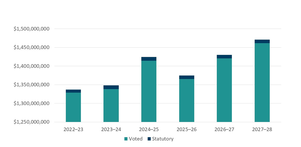 The increase from 2022-23 to 2023-24 results from the extension of temporary positions created to address immediate operational requirements and support initiatives announced in Budget 2021 and Budget 2022. The decrease in full-time equivalents from 2023-24 to 2024-25 is due to the sunsetting of time-limited initiatives, where the requirement for the respective temporary positions will begin to wind down.