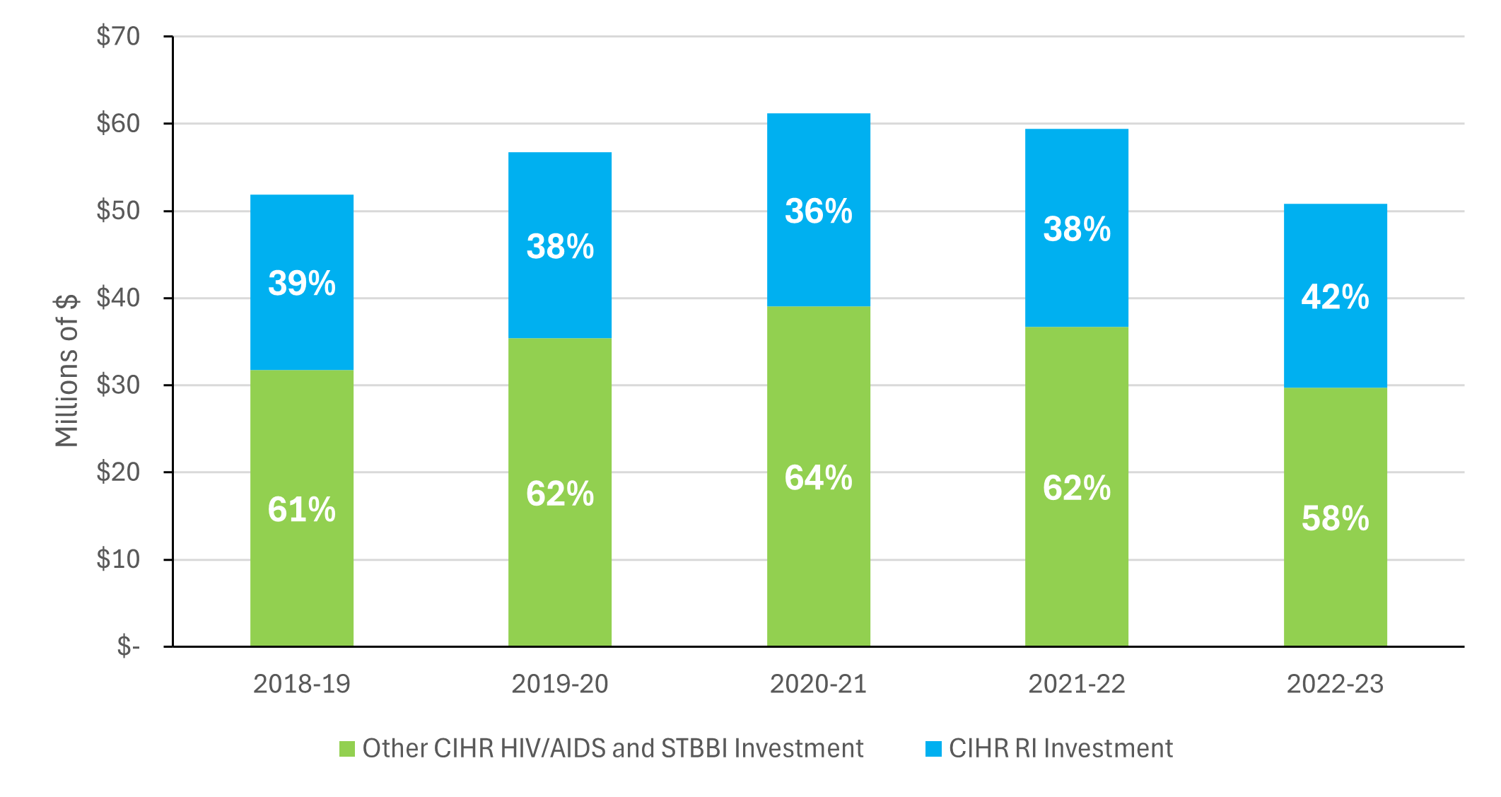 Autres investissements des IRSC dans la recherche sur le VIH/sida et autres ITSS 31 776 201,57 $ 35 411 840,43 $ 39 060 892,00 $ 36 731 499,00 $ 29 731 745,00 $ 172 712 178,00 $